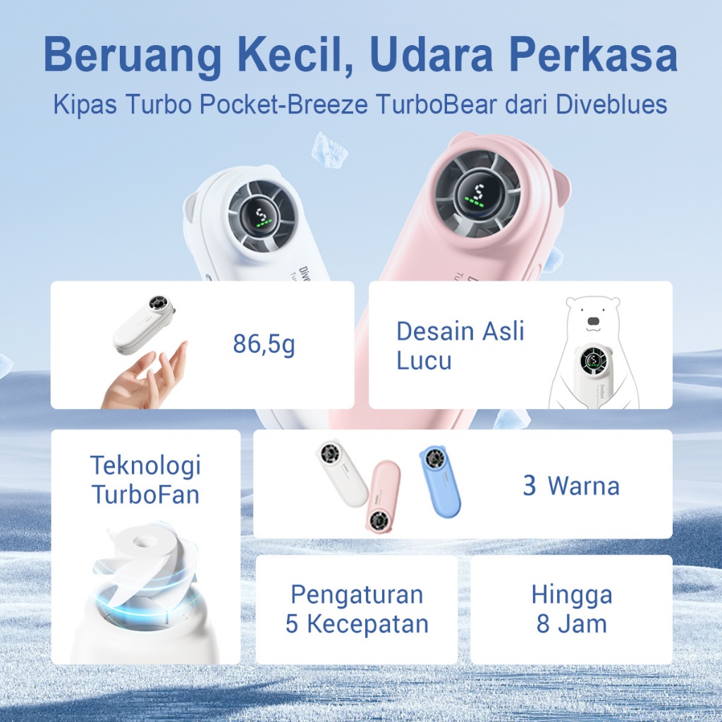 Diveblues Kipas Angin Portable 5 Speed digital display adjustable High-speed 19500RPM Kipas Genggam