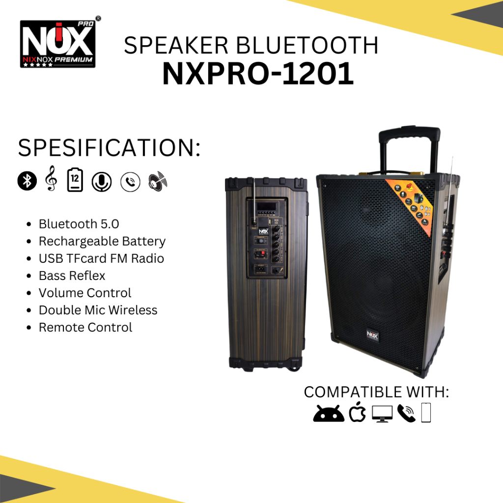 [TLA] SPEAKER BLUETOOTH NIXNOX PREMIUM PRO NX-1201 + FREE WIRELESS MIC || 12 INCH FULLBASS SPEAKER OUTDOOR / KARAOKE / NONGKRONG / PARTY
