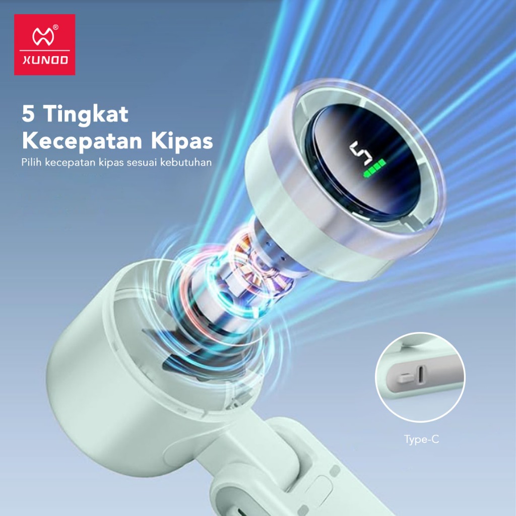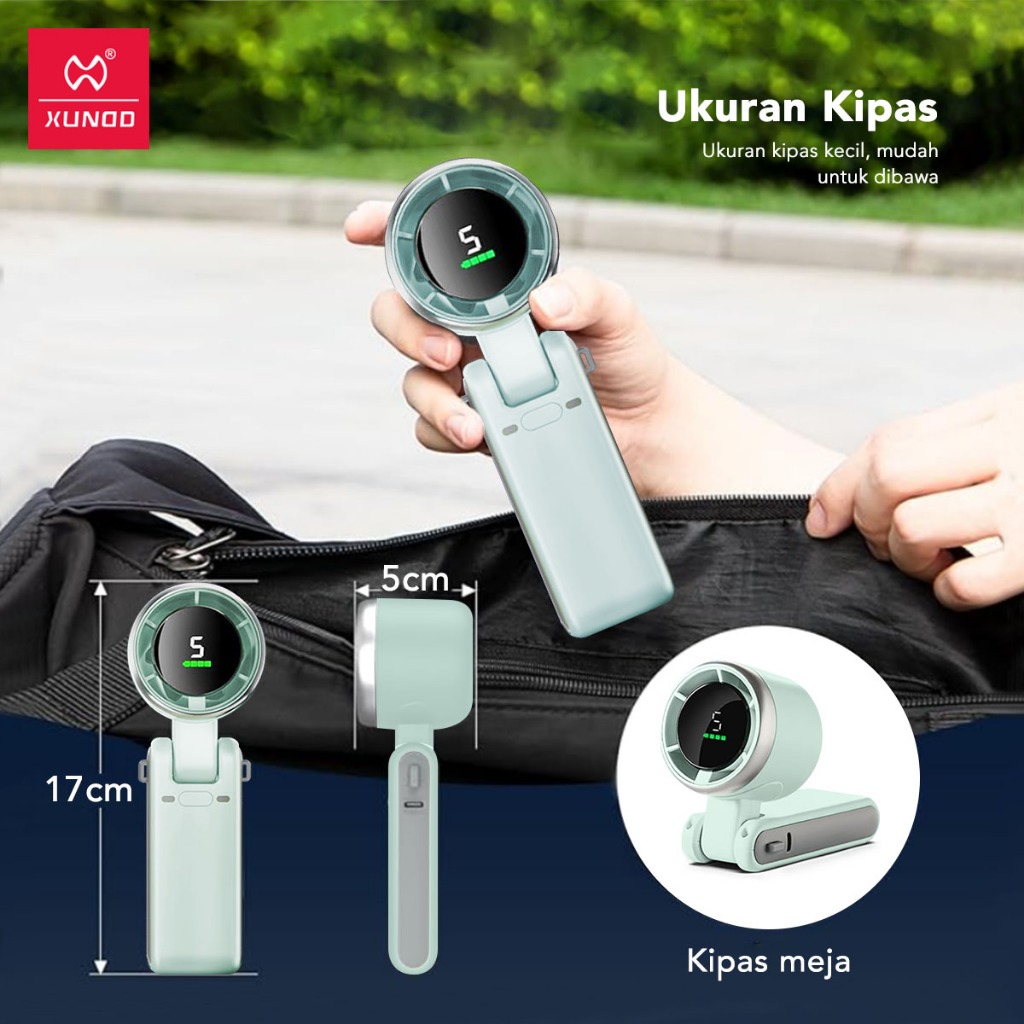 XUNDD Mini Kipas Folding / Foldable Neck Hanging / LED Display Handheld Portable Fan / 5 Speeds Adjustable Foldable Small Desk Fan / 3600mAh USB Rechargeable Powerful Cooling Turbo Fan XDOT-065