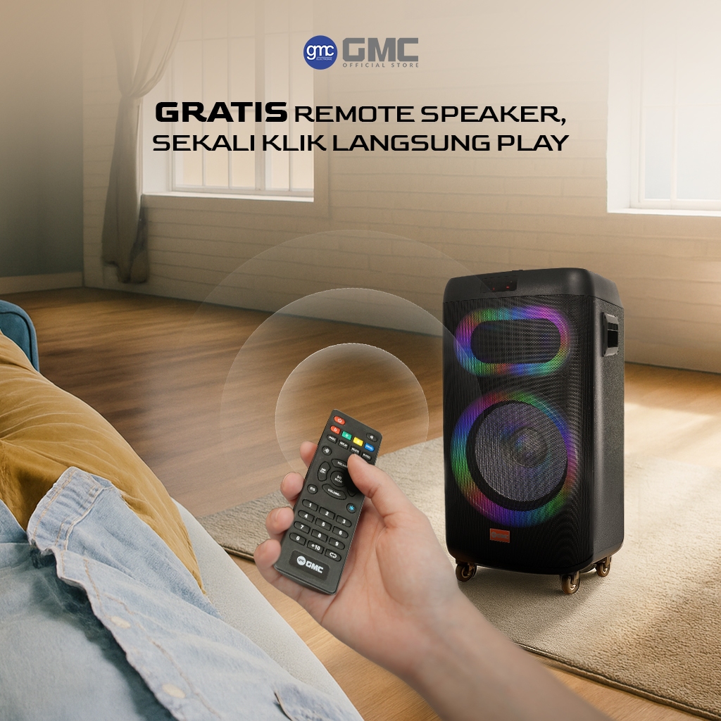 GMC Speaker 898H Bluetooth Karaoke Speaker 12" 250W, USB, AUX, Radio, Guitar, Gratis 2 Mic Wireless