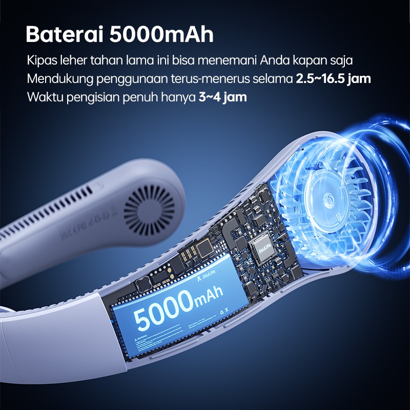 JISULIFE Kipas Leher Life4 Portable - Baterai Kapasitas Tinggi 5000mAh Isi Ulang USB, Pengaturan Lima Kecepatan, Kipas Gantung yang Dapat Dipakai, Tanpa Tangan