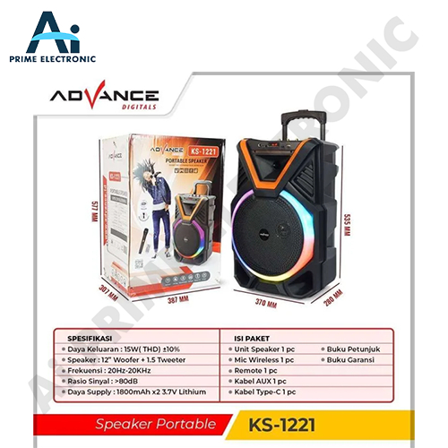 ADVANCE KS1221 Speaker Bluetooth Portable Karaoke 12 Inch 2 Microphone