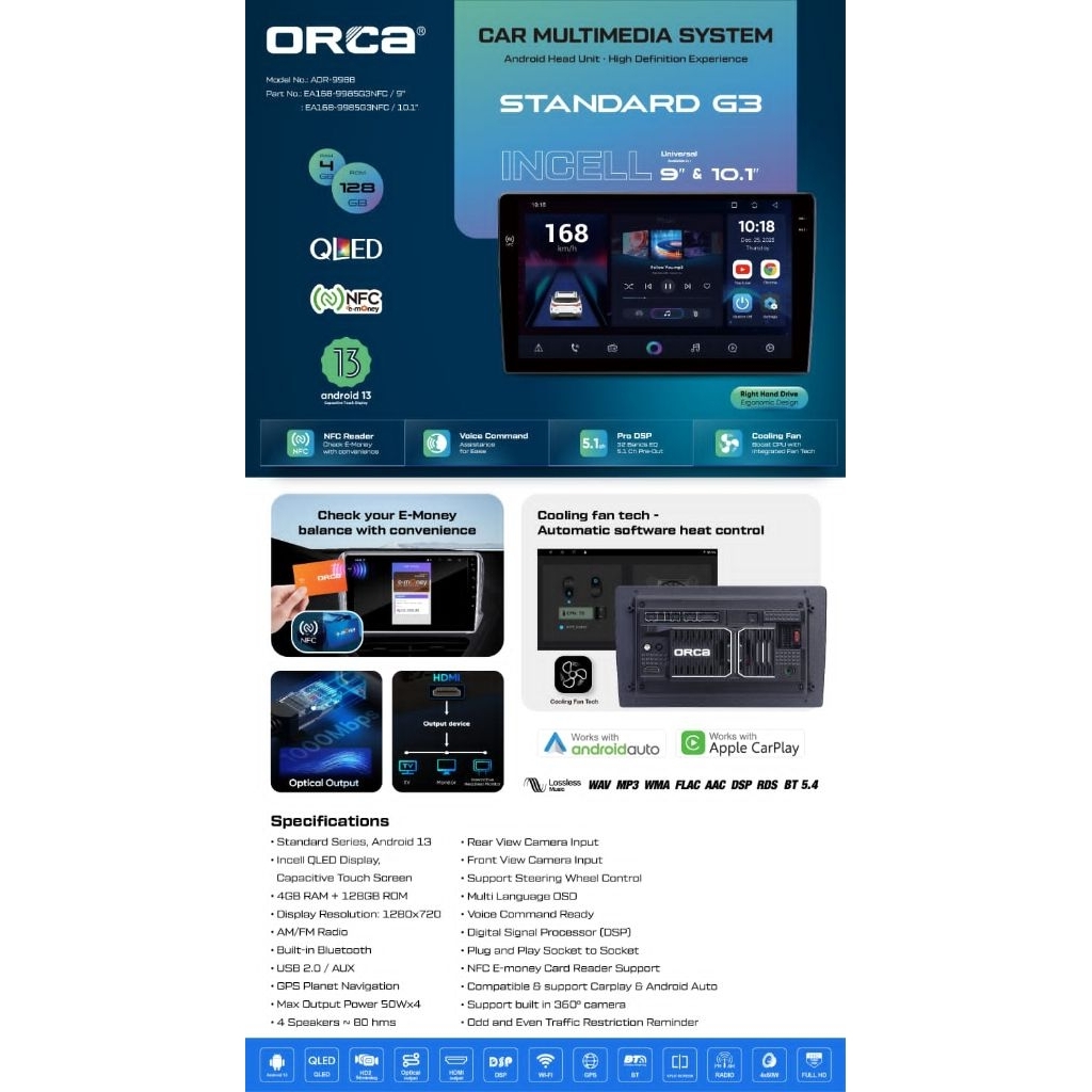 Head Unit Android Orca Standart Series G3 9 & 10" ADR-9988 DSP Voice Command Ram 4/128GB