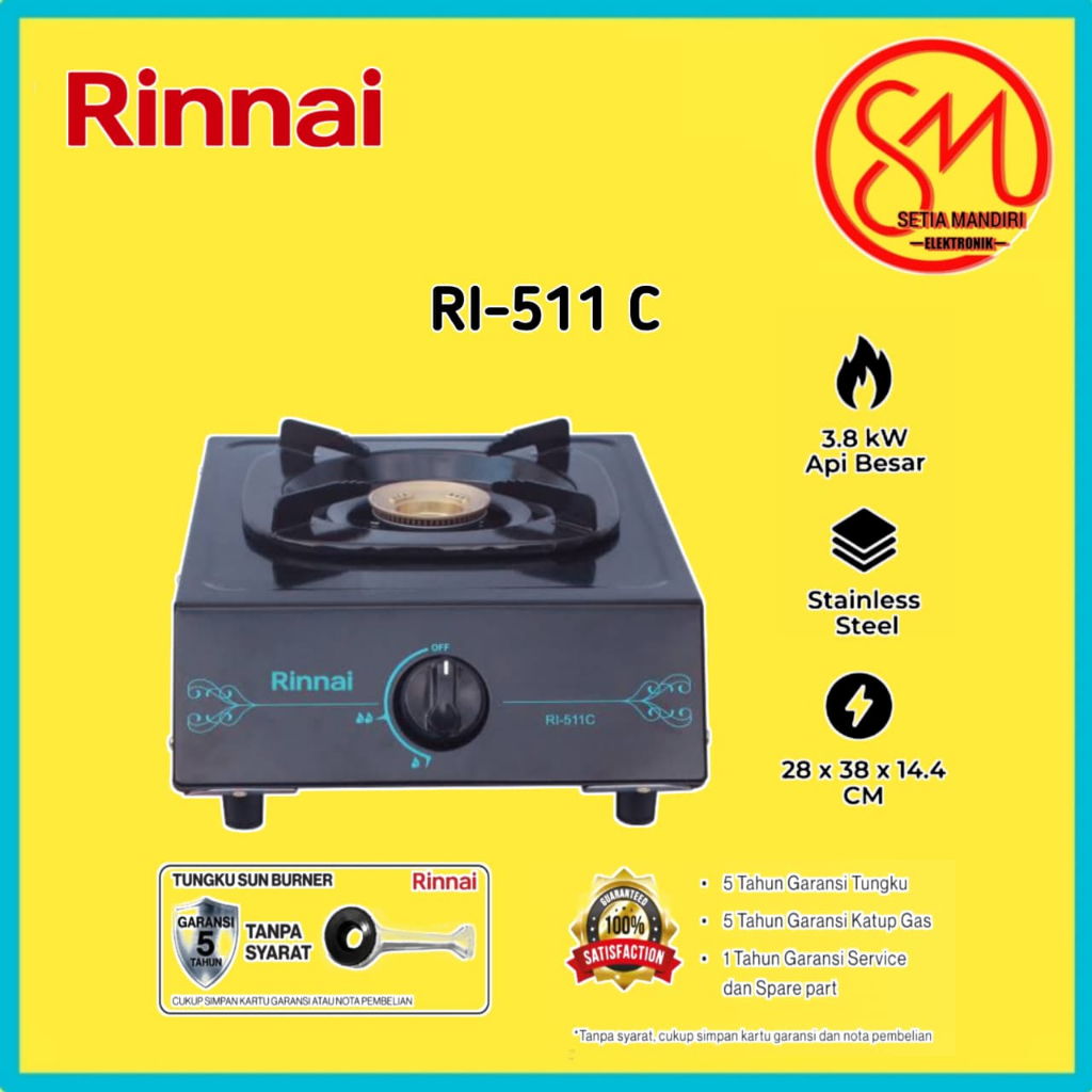 RINNAI RI-511C | RI-511E I RI-511A I RI-511T Kompor Gas 1 Tungku Stainless