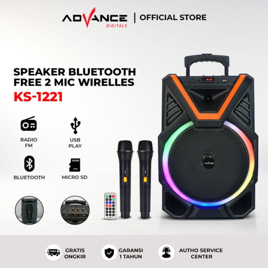 speaker bluetooth ADVANCE KS 1221 portabel speaker aktif bluetooth 12 inch free double Mic
