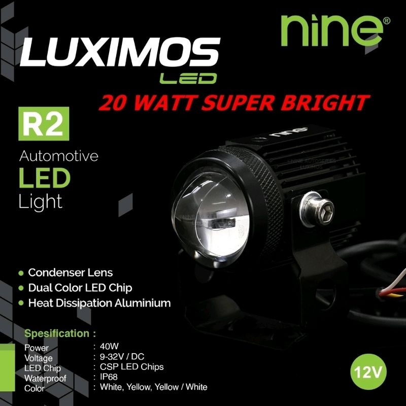 Lampu Led Tembak Sorot Laser Putih Kuning Original Nine Luminos Q2 R2 Super Terang