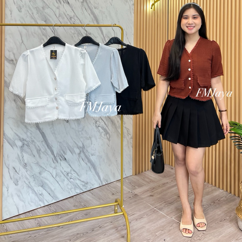 ATASAN WANITA 8866 ATASAN WANITA WAFFLE PREMIUM ATASAN T0P WANITA ATASAN BLOUSE RENDA ATASAN BLOUSE LENGAN PENDEK