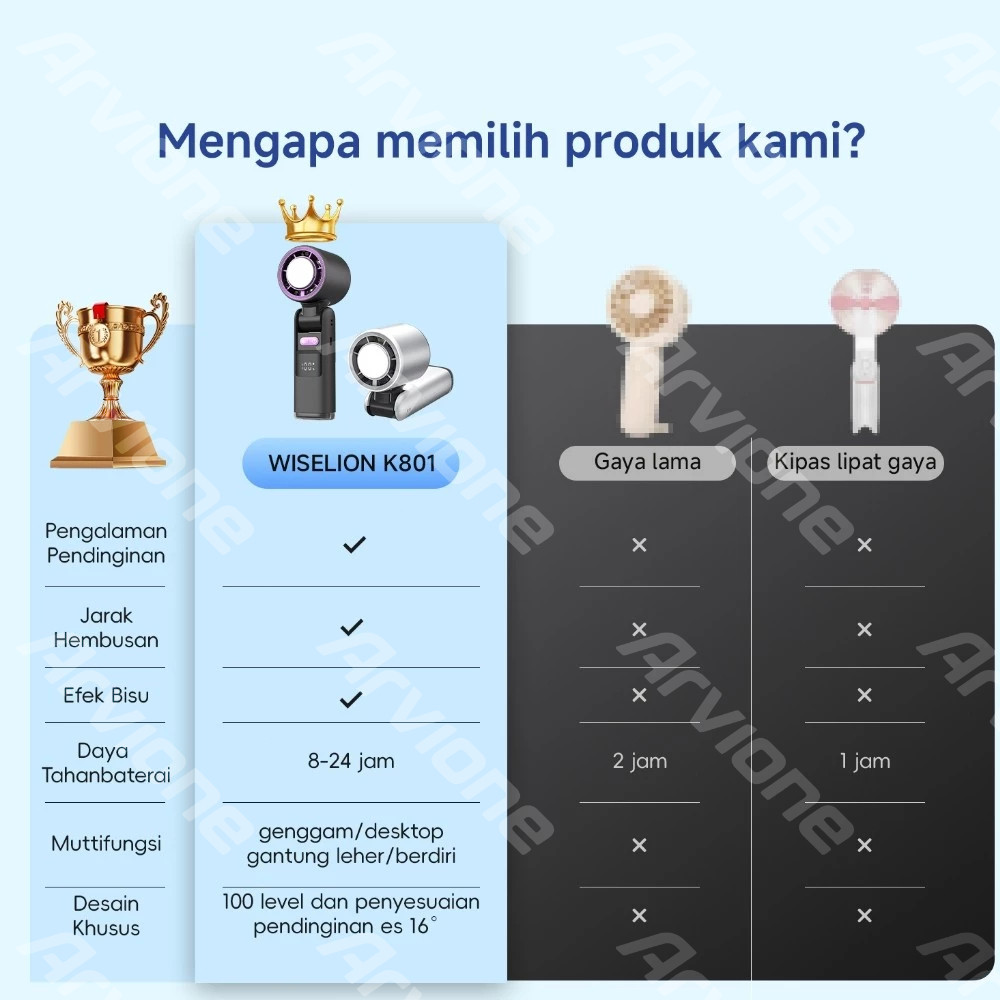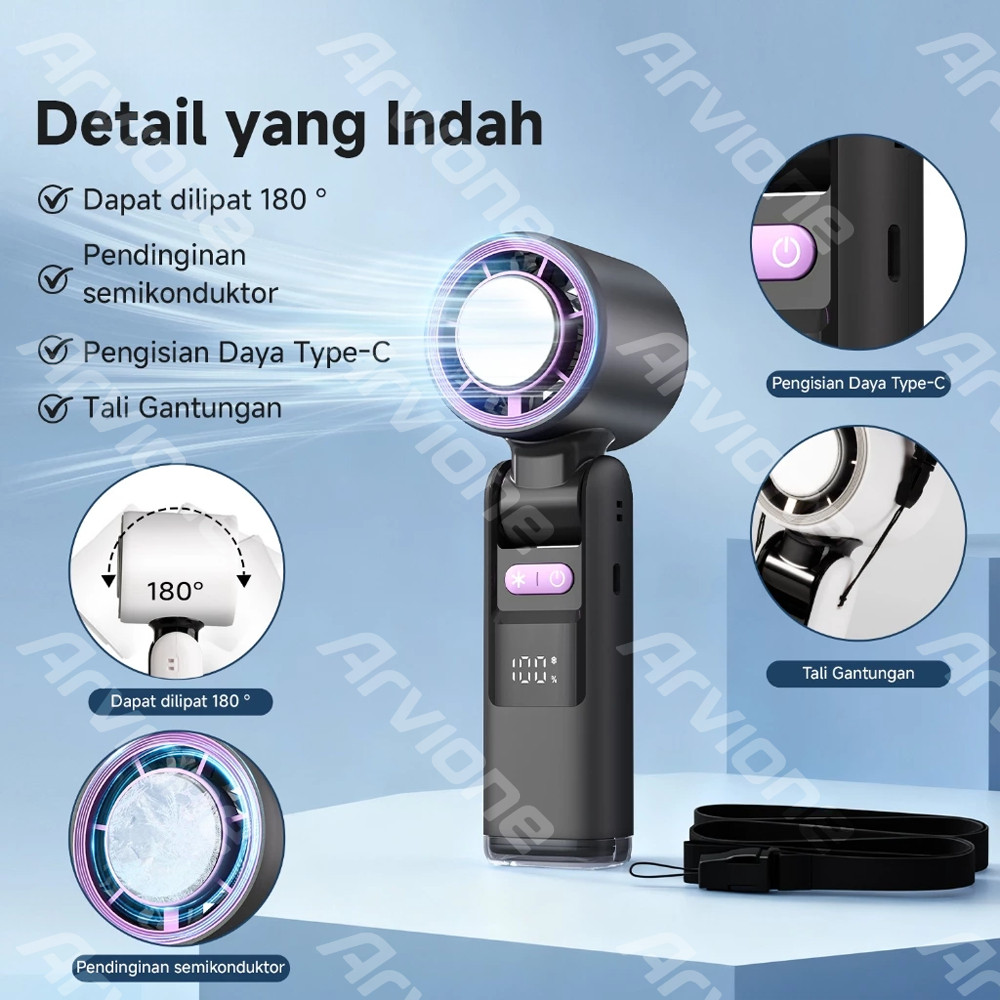 [BEST SELLER] ARVIONE Kipas Penyejuk Genggam K801 Angin Dingin Es Portable Kecepatan Tinggi Tahan Lama 24 Jam Turbo Mini Tampilan LED Kipas Genggam dan Leher Model