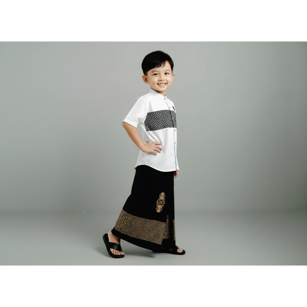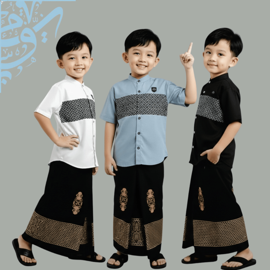 Baju Koko Anak Laki Laki Set Sarung Koko Lengan Pendek Sarko Usia 3-10 Tahun Katun Premium