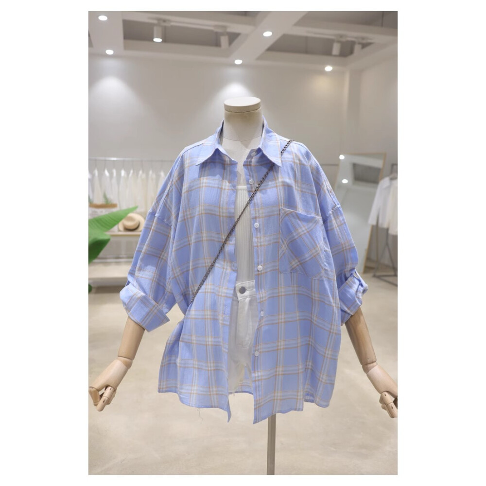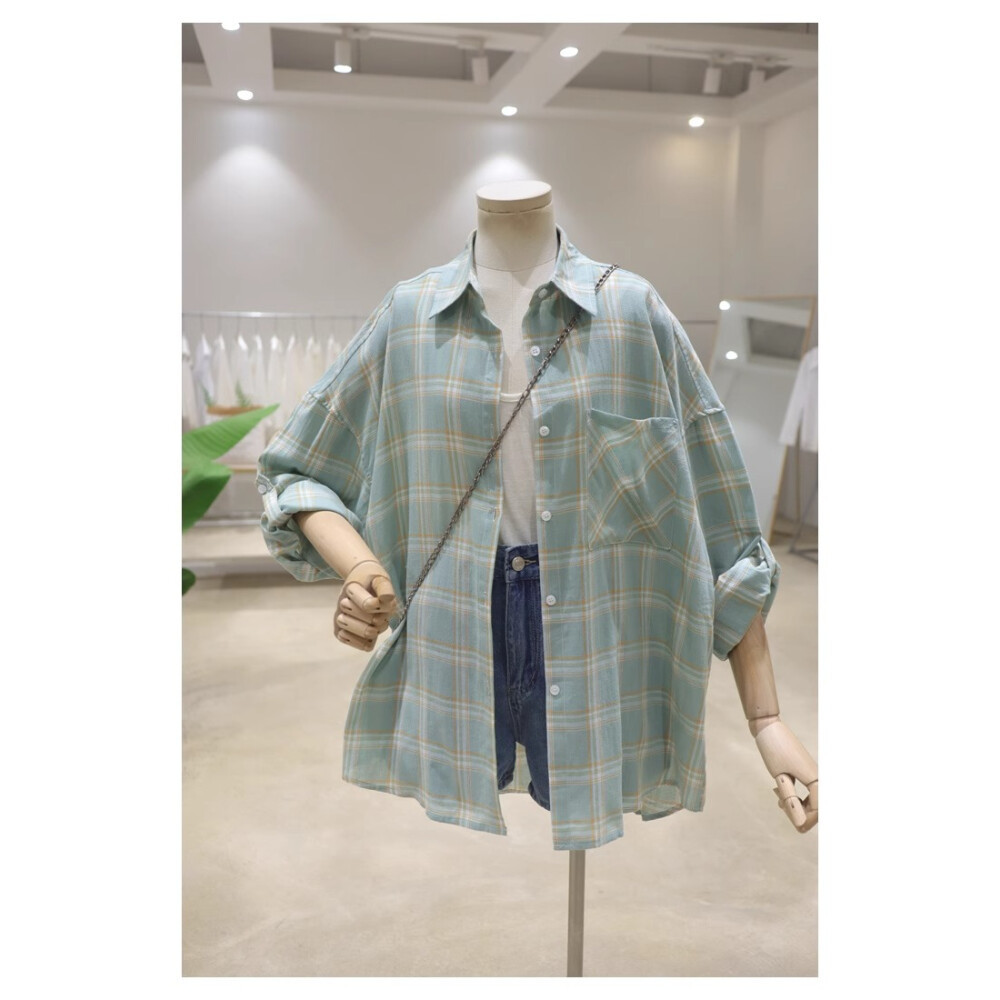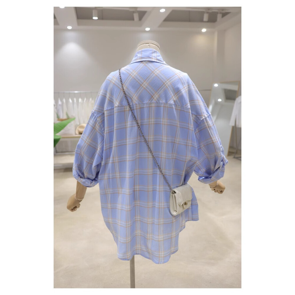 Atasan kemeja lengan panjang kotak-kotak longgar dan ramping untuk wanita