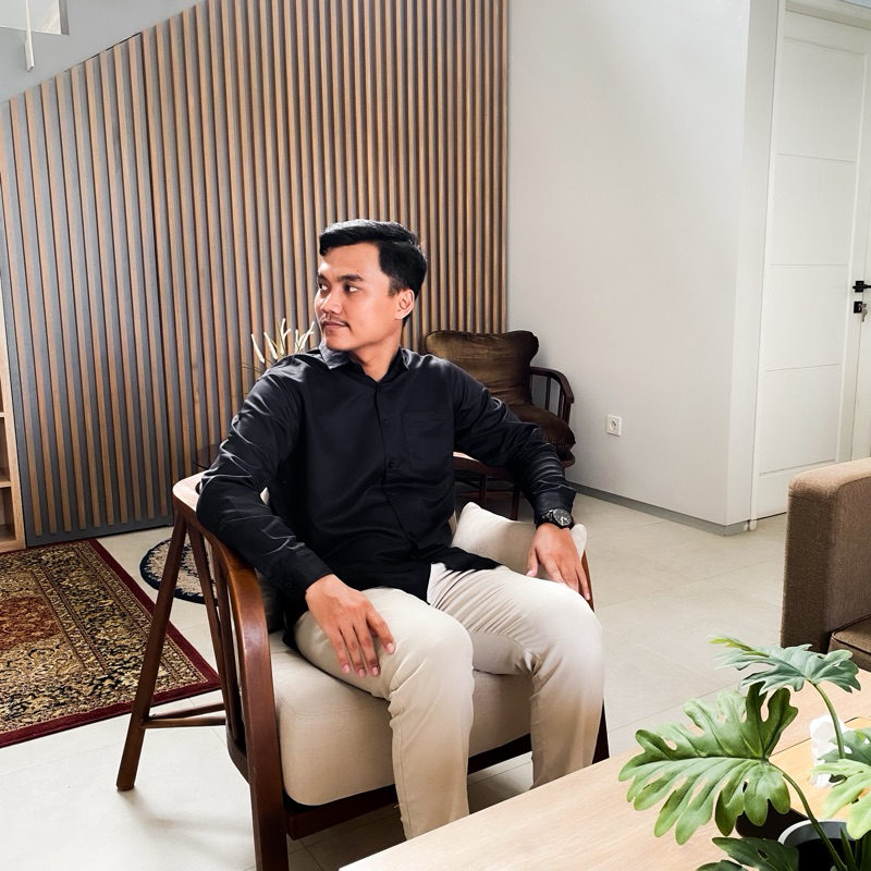 Kemeja Polos Hitam Pria Lengan Panjang Hem Slimfit Casual Formal