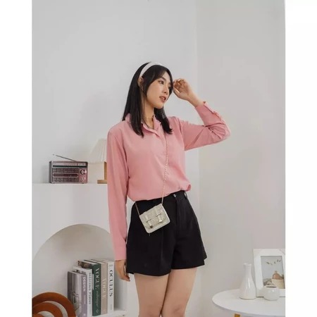 KEMEJA PUTIH POLOS WANITA LENGAN PANJANG KERJA NGAMPUS KANTORAN KEMEJA BASIC HITAM