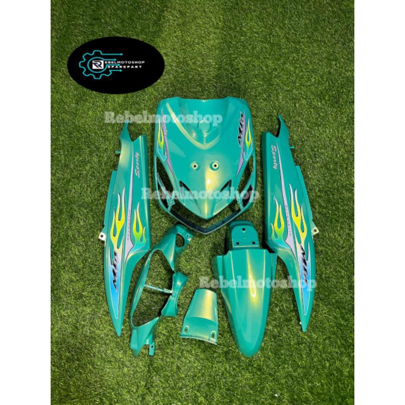 Cover full body halus Yamaha mio smile warna aliens green plus striping transparan