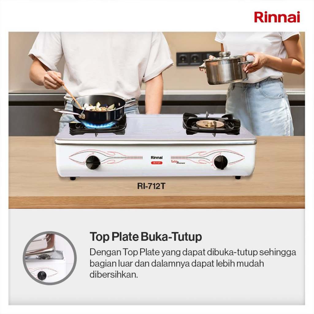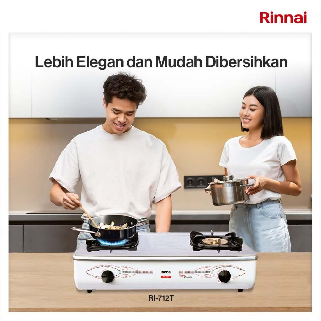 Kompor Gas Rinnai 2 Tungku RI 712T Api Turbo Putih