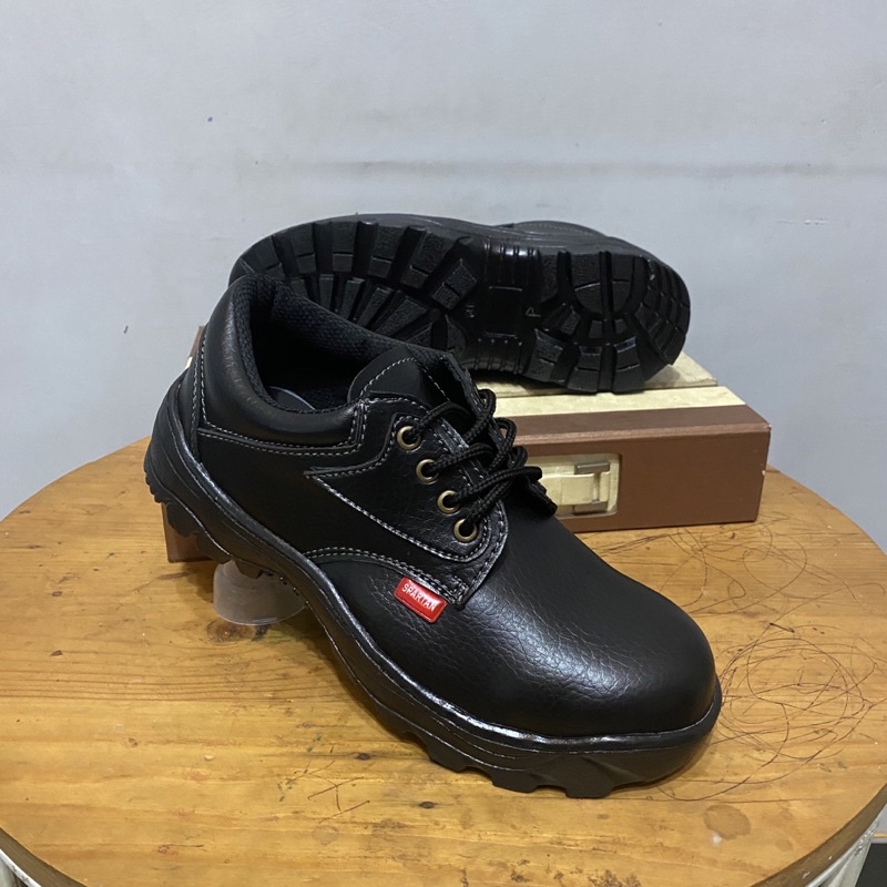 sepatu safety pendek murah bahan kulit sintetis premium dengan ujung besi