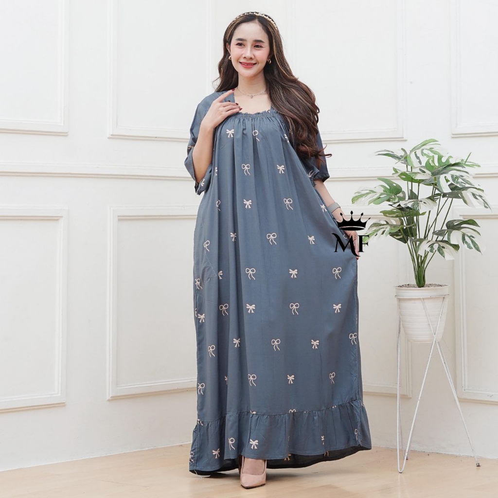 Dress Wanita Jumbo Ld 140 Model Terbaru Bahan Rayon Premium Kekinian Simpel Motif Pita