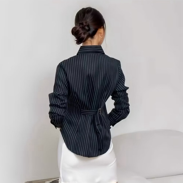 Kemeja Wanita Lengan Panjang Stripe | Baju Casual Formal Modis Elegan Kekinian