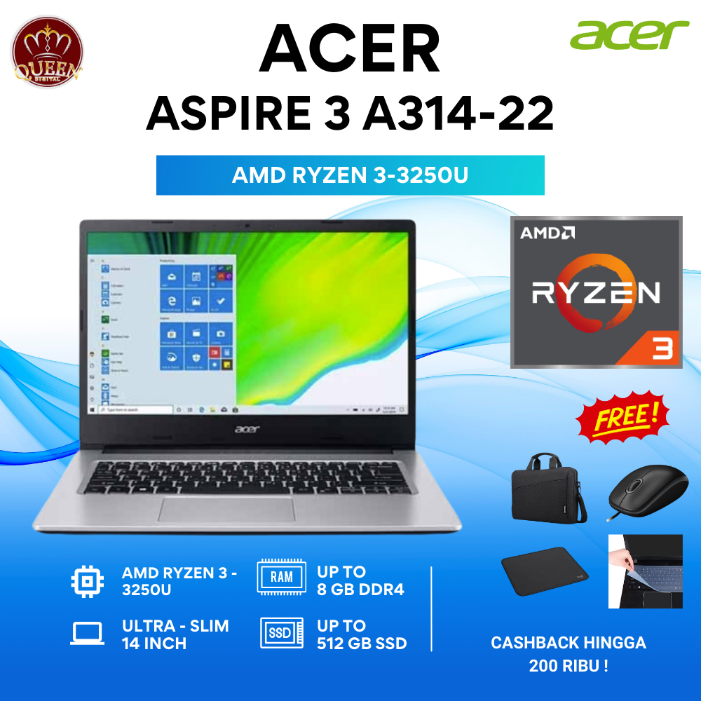 ACER A314-22 | AMD RYZEN 3-3250U | 8GB RAM | SSD 256GB | 14 INCH
