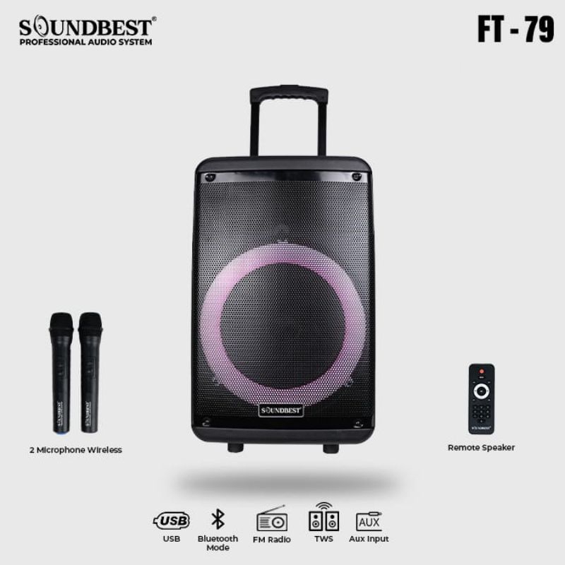 speaker meeting portable bluetooth SOUNDBEST FT79 UHF ORIGINAL 12inch suara bagus dan kencang soundbest speaker berat dan besar 12 inch ( 2mic besi wireless )