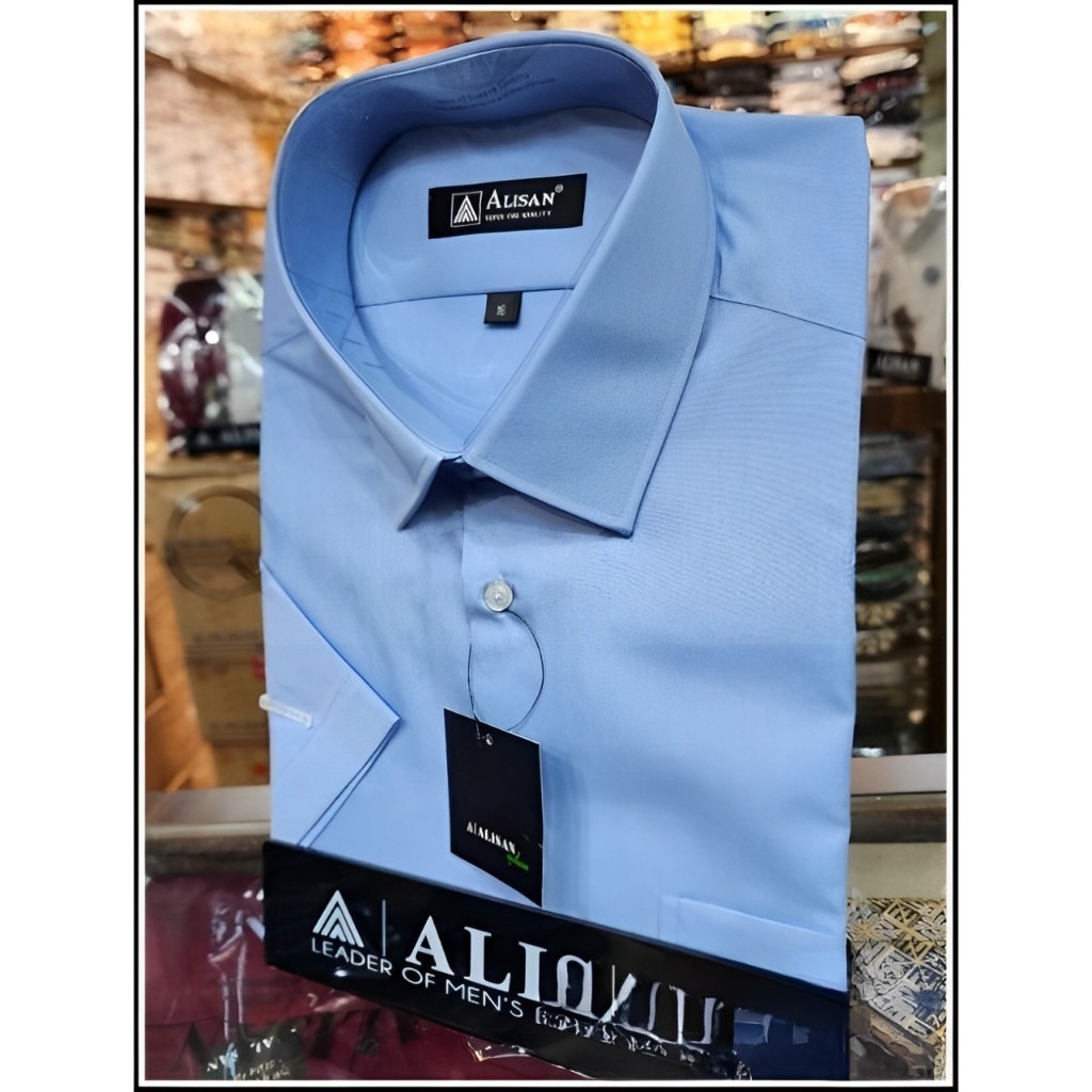 Kemeja Polos Formal ALISAN Slimfit Tangan Lengan Pendek Premium Sofblue Biru Langit Pria Kerja Kntor