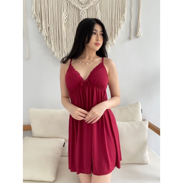 Sleepwear Dress + Panties Elisa Red / Baju Tidur Wanita Dress + Panties / Lingerie Wanita