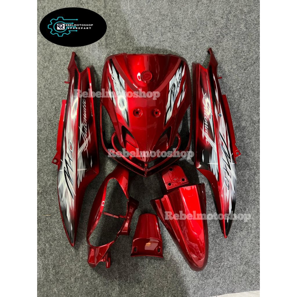 Cover full body halus yamaha mio smile warna merah marron plus striping