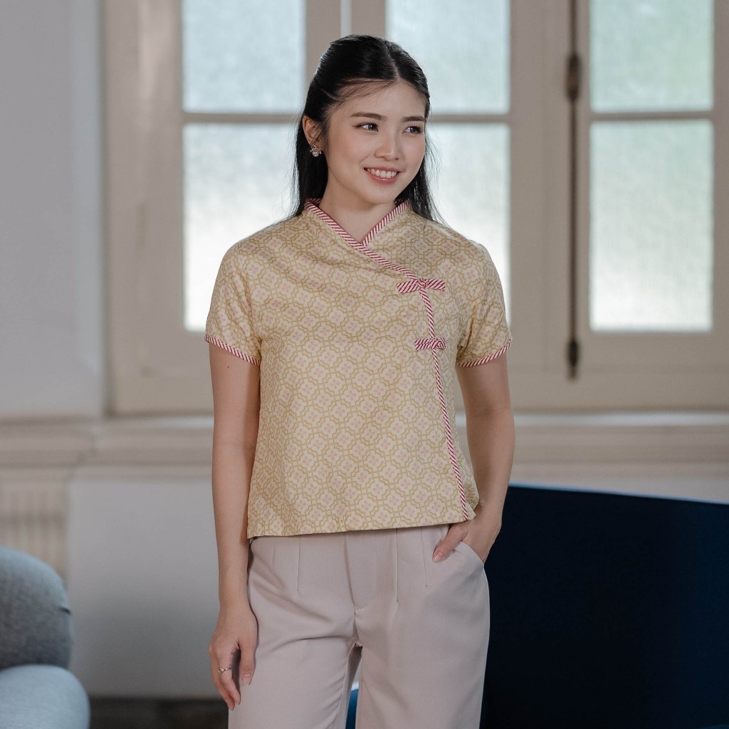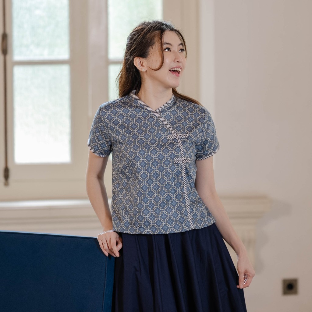 Beatrice Clothing Thea Blouse - Atasan Motif Kerah V-Neck