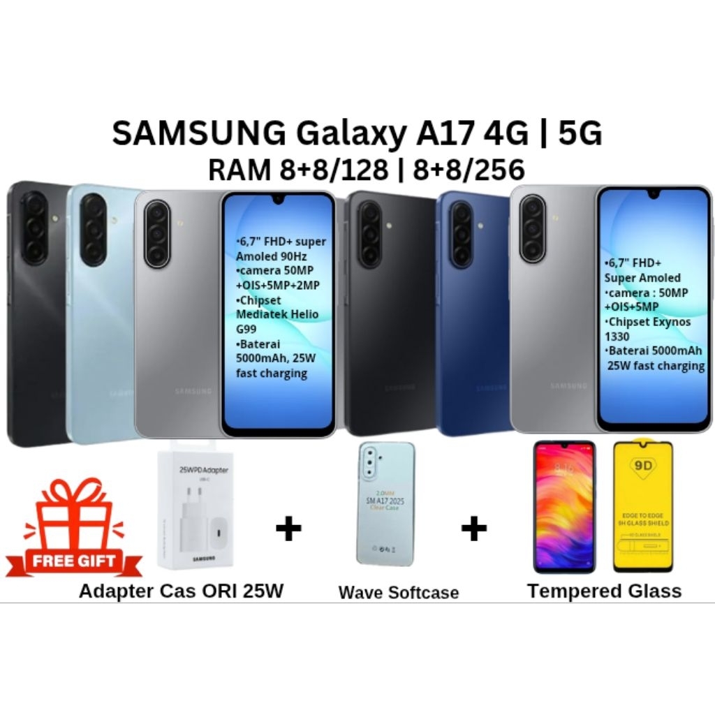 SAMSUNG GALAXY A17 5G I A17 4G 8/128 8/256 RAM 8+8GB ROM 128 256GB Super AMOLED 6.7 BATERAI 5000mAh GARANSI RESMI