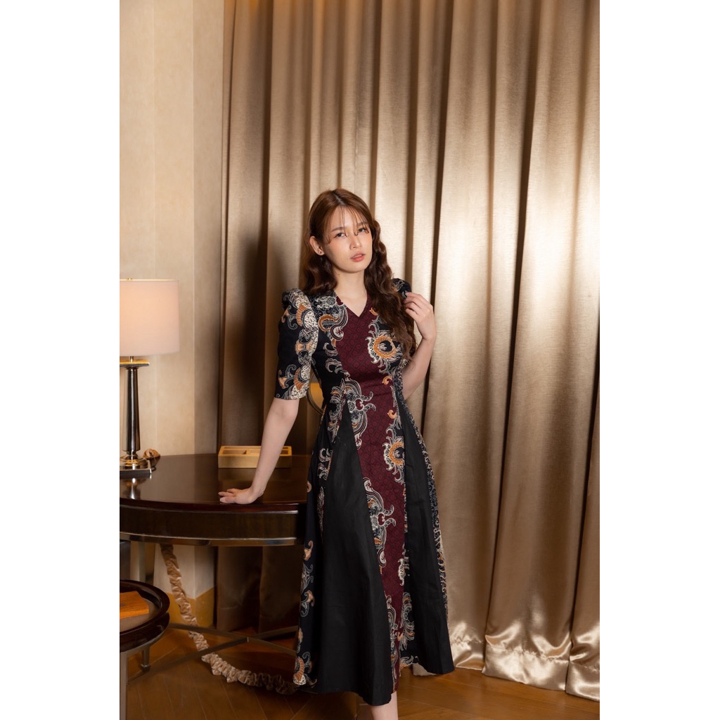 HERFIT alifah dress batik midi kombinasi katun strecth