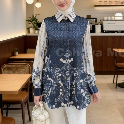 Blouse Hijab Friendly Motif Premium Lengan Panjang Elegan Gaya Kekinian