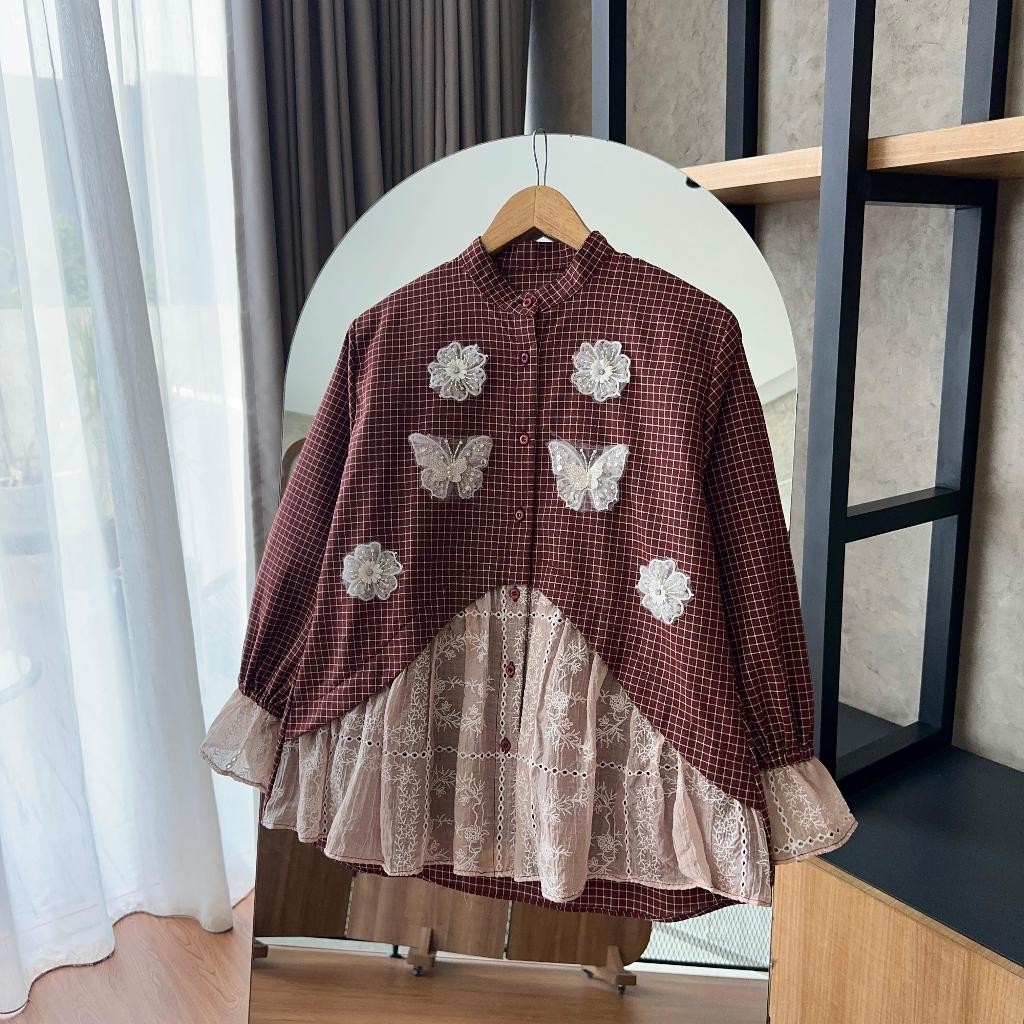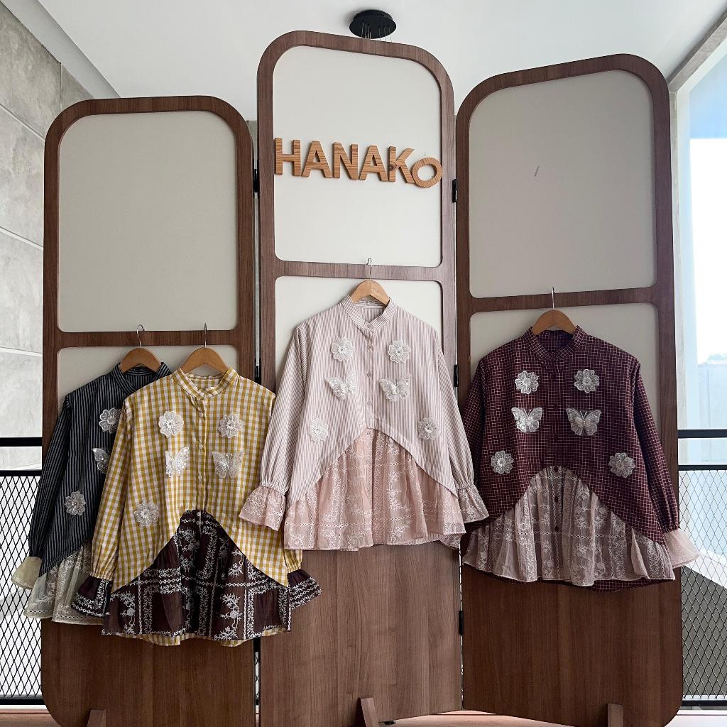 HANAKO 607 Kemeja Linen Salur Rempel Payet Kotak-Kotak