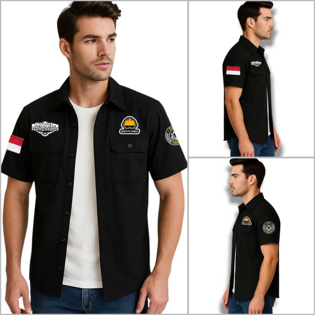 Kemeja Pria Kerja Bordir Workshirt Tebal Rapih Casual Kasual Terbaru Kemeja Cowok American Drill