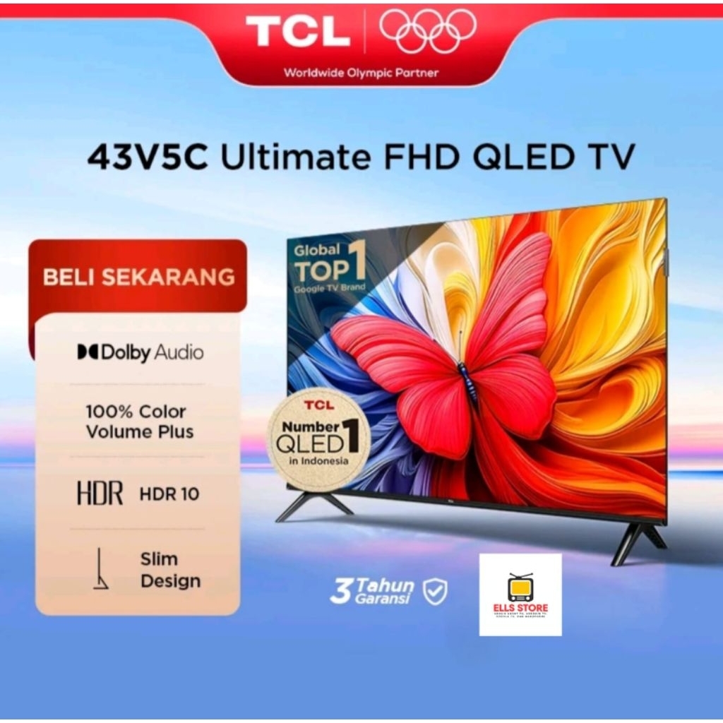 TCL QLED TV 32V5C 40V5C 43V5C [32/40/32 Inch] FHD TV - GTV - Netflix - YouTube - Bluetooth - GAsisten - Garansi Resmi