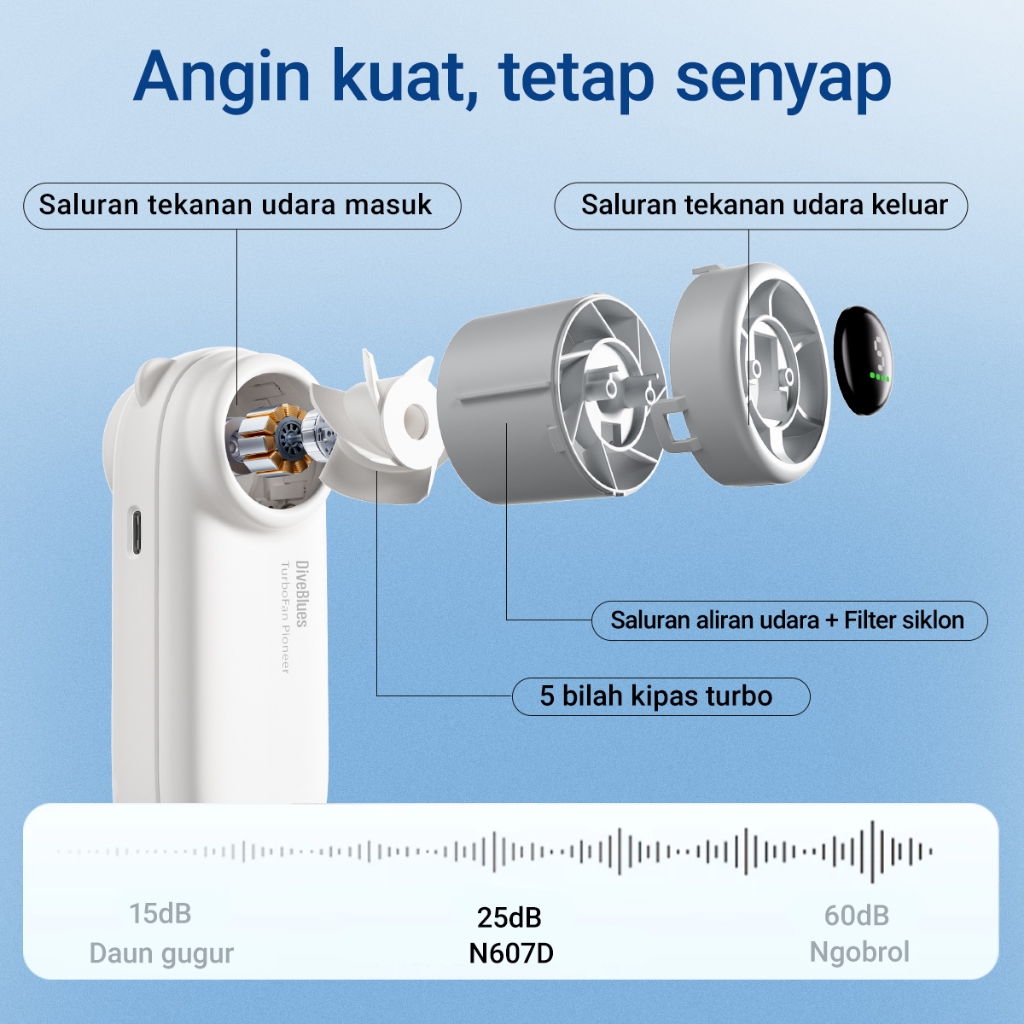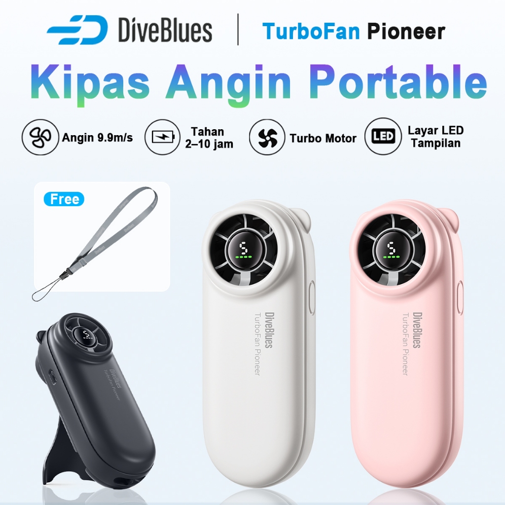 DiveBlues Kipas Angin portable mini Turbo 5 Gear Wind Speed Digital Display Adjustable 4000mAh Untuk Olahraga Luar Ruangan dan Pendinginan Cepat 19500RPM