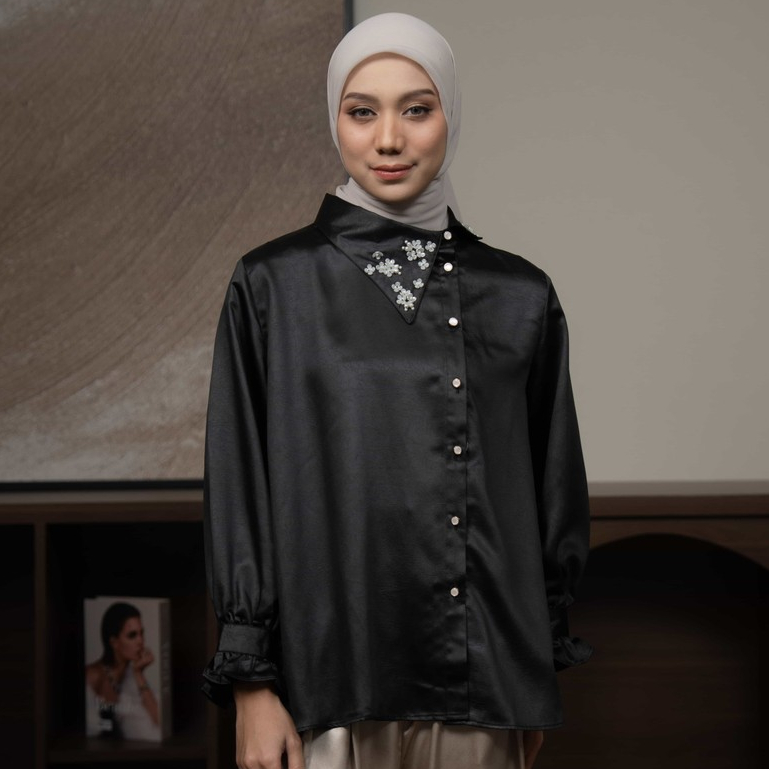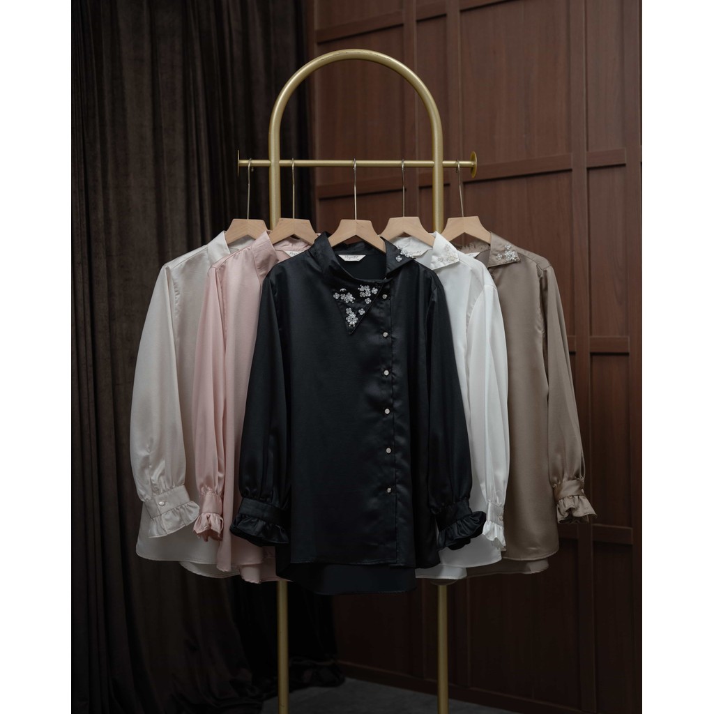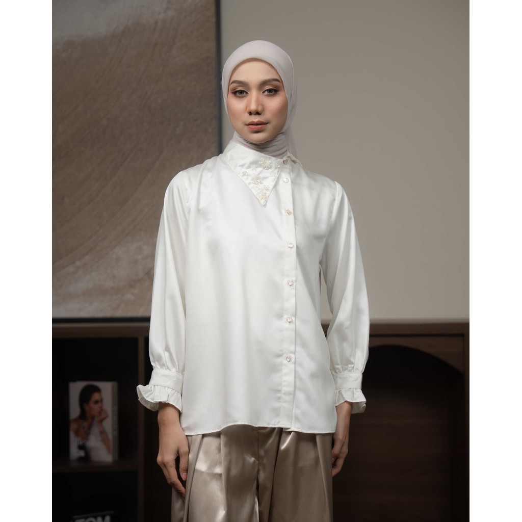 Mayoutfit Ailsa Shirt Kemeja Wanita Baju Kondangan Elegan Aksen Breads Silk Textured