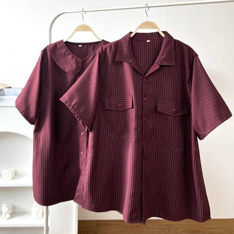AKAVI - KEZIA BUGATTI LENGAN PENDEK SUPER JUMBO KEMEJA BIGSIZE ATASAN OVERSIZE LD 120 130 140 150 354gr