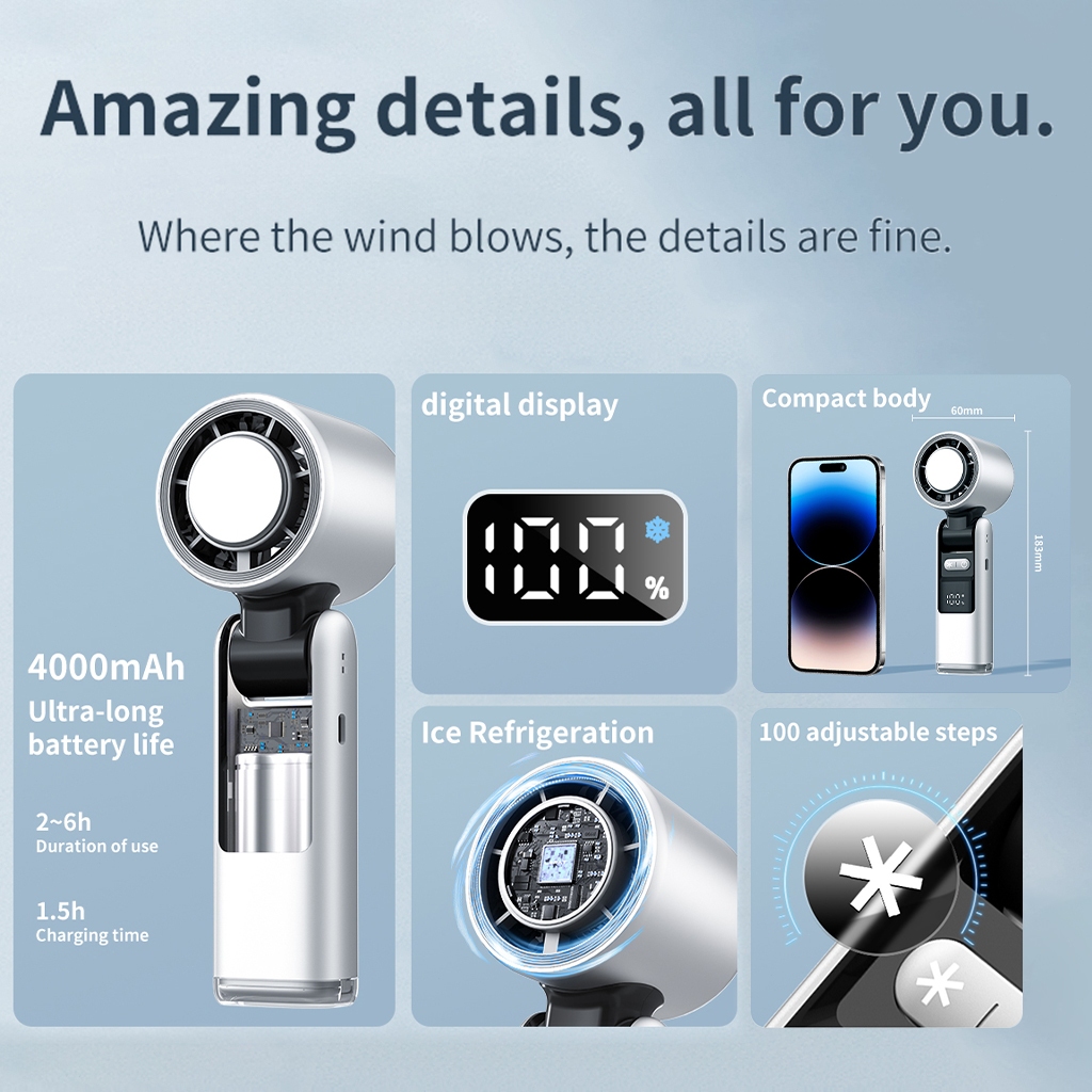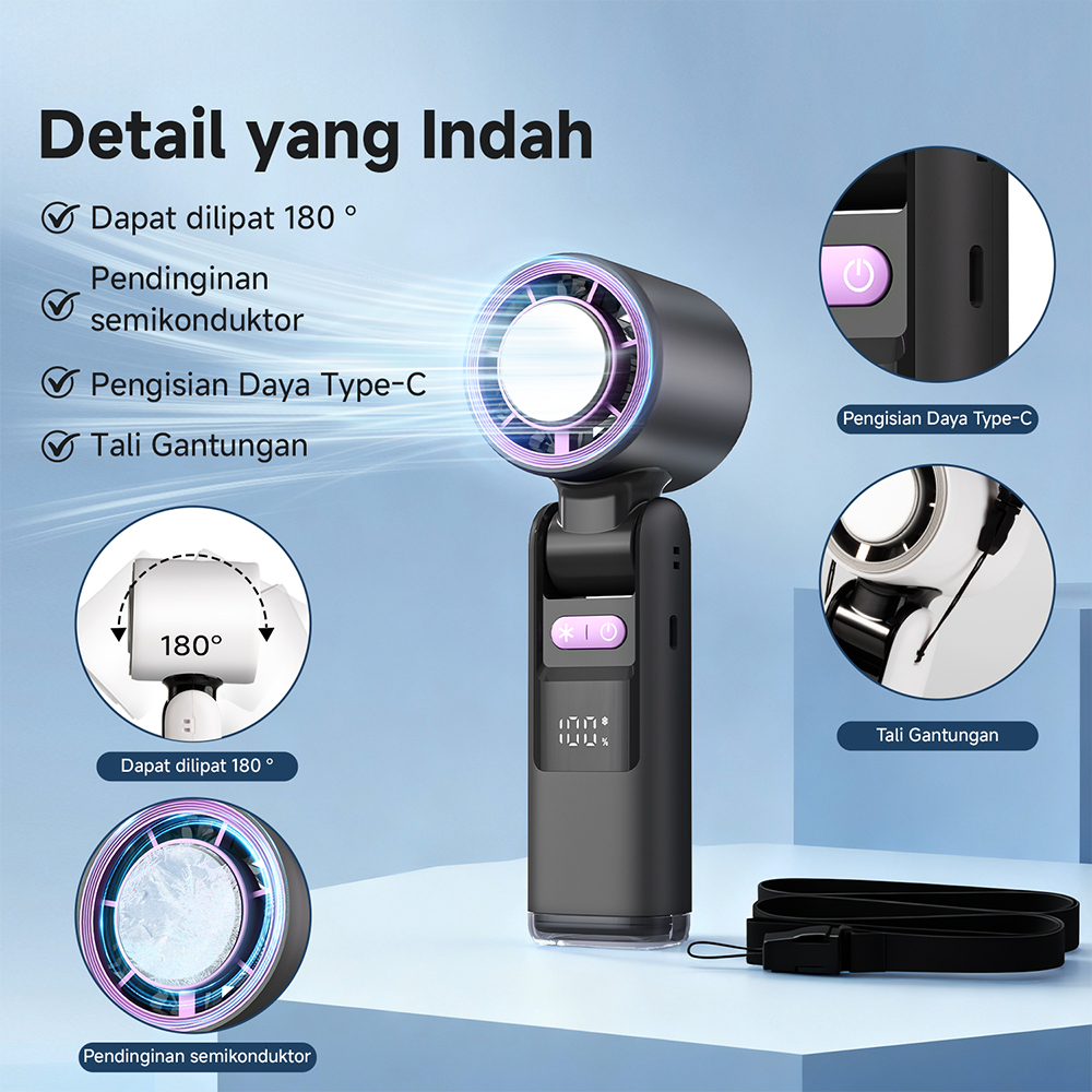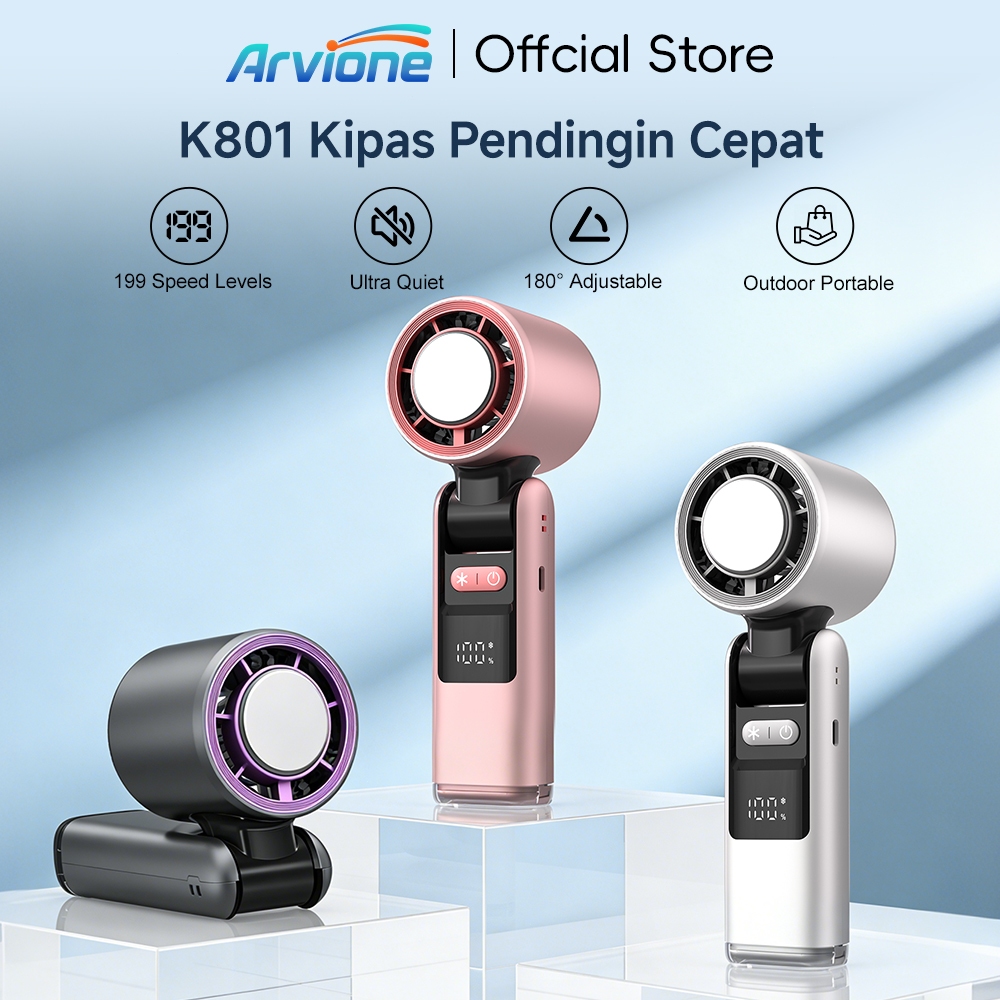 [BEST SELLER] ARVIONE K801 Kipas Portabel Turbo Mini Pendingin Semikonduktor dengan Tampilan Digital LED & Kecepatan Tinggi Fan Genggam Angin Dingin