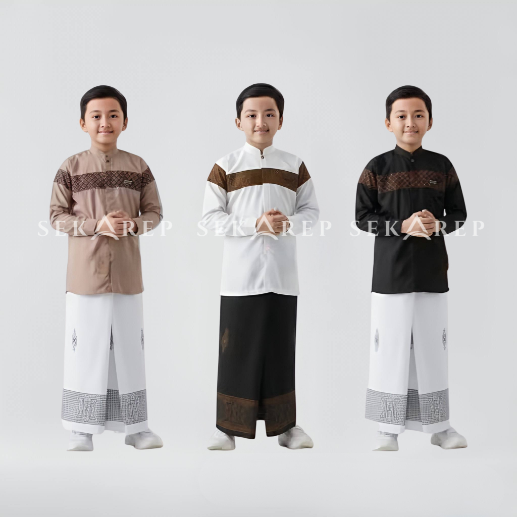 Sarko Sarung Koko Anak Lengan Panjang Bahan Katun Full Kancing Usia 5-13 Tahun