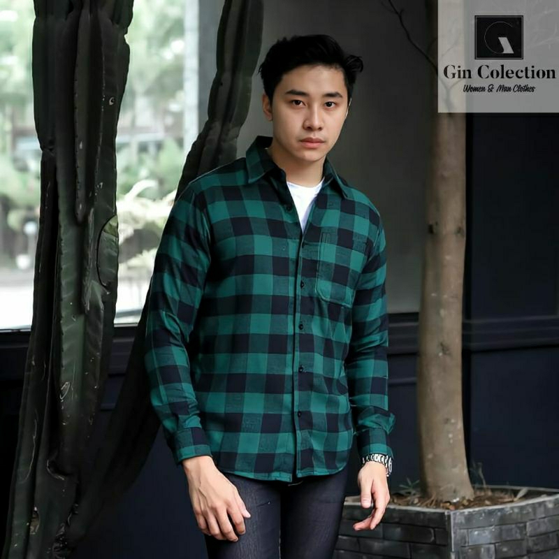 Kemeja Flanel Hijau Lengan Panjang Pria Premium Quality Kemeja Flannel Pria Kemeja Kotak Kotak
