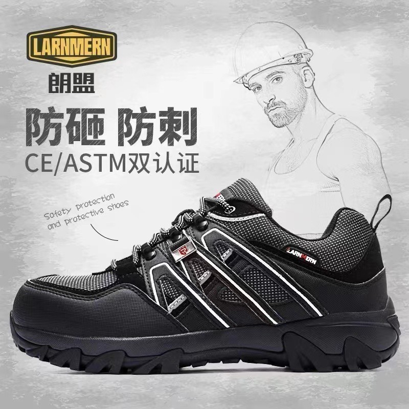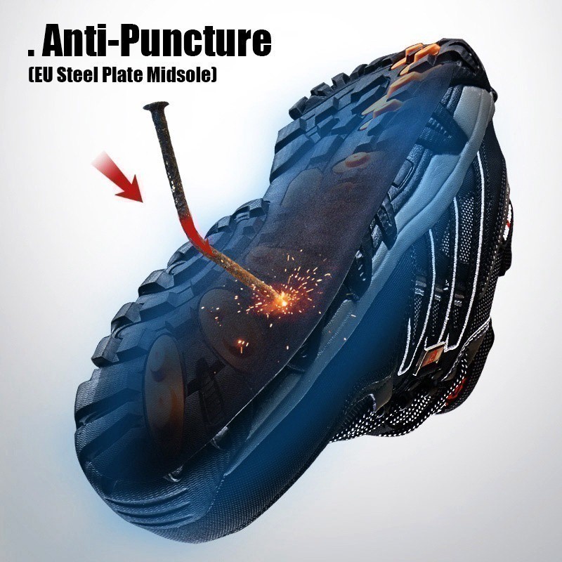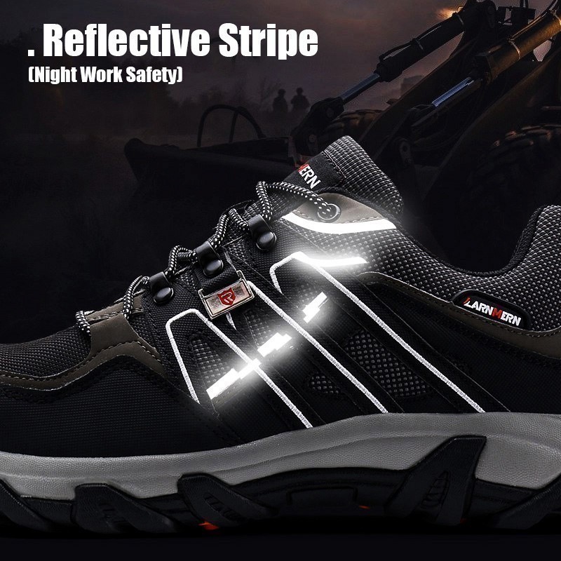 Larnmern Pria Steel Toe Sepatu Safety SRC Non-Slip Bekerja Perlindungan Keamanan Alas Kaki Bernapas Tahan Lama Hiking Sneaker