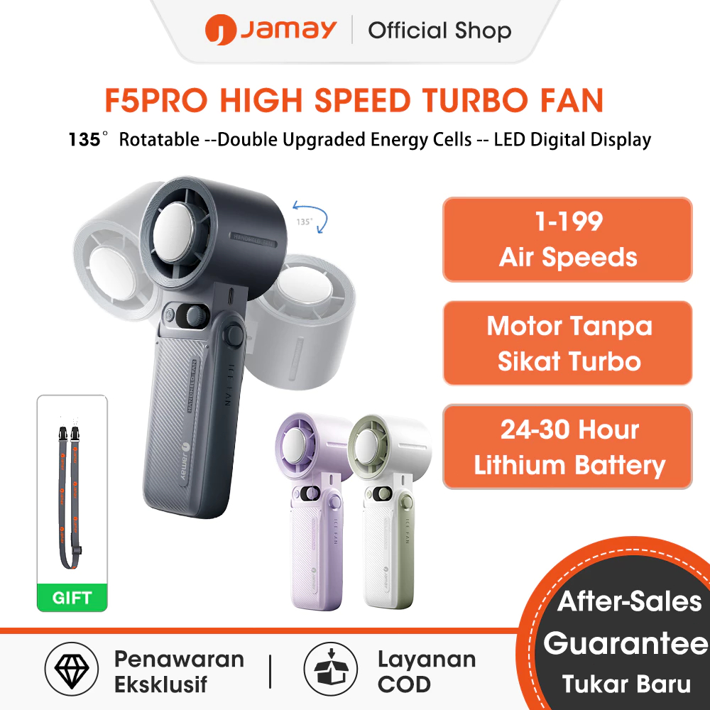 Jamay Kipas Lipat Mini Portabel 30000RPM 8000mAh Daya Tahan Baterai Lama 199 Tingkat Kecepatan Turbin Kuat Kebisingan Rendah Layar Digital Kipas Genggam Olahraga Luar Ruangan F5PRO
