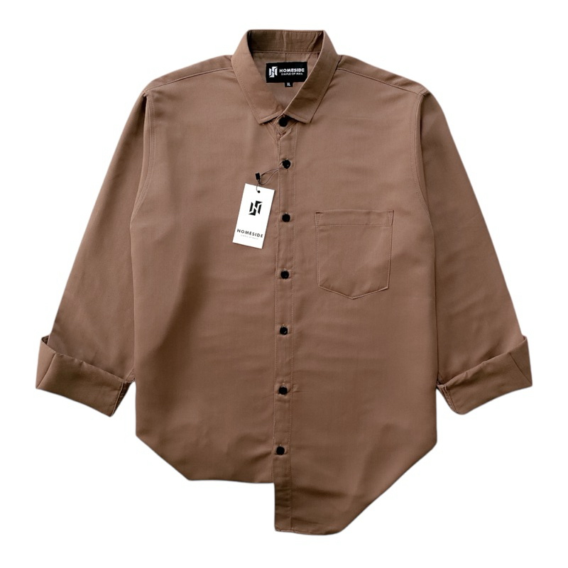 HOMESIDE Kemeja Polos Mocca Pria Lengan Panjang Hem Slimfit Casual Formal Premium M L XL XXL XXXL