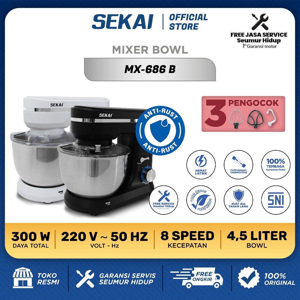 SEKAI Stand Mixer Low Watt - Alat Pengaduk Adonan Mixer 4.5 L / 6.5L - MX 685 / MX 686 / MX 687 B