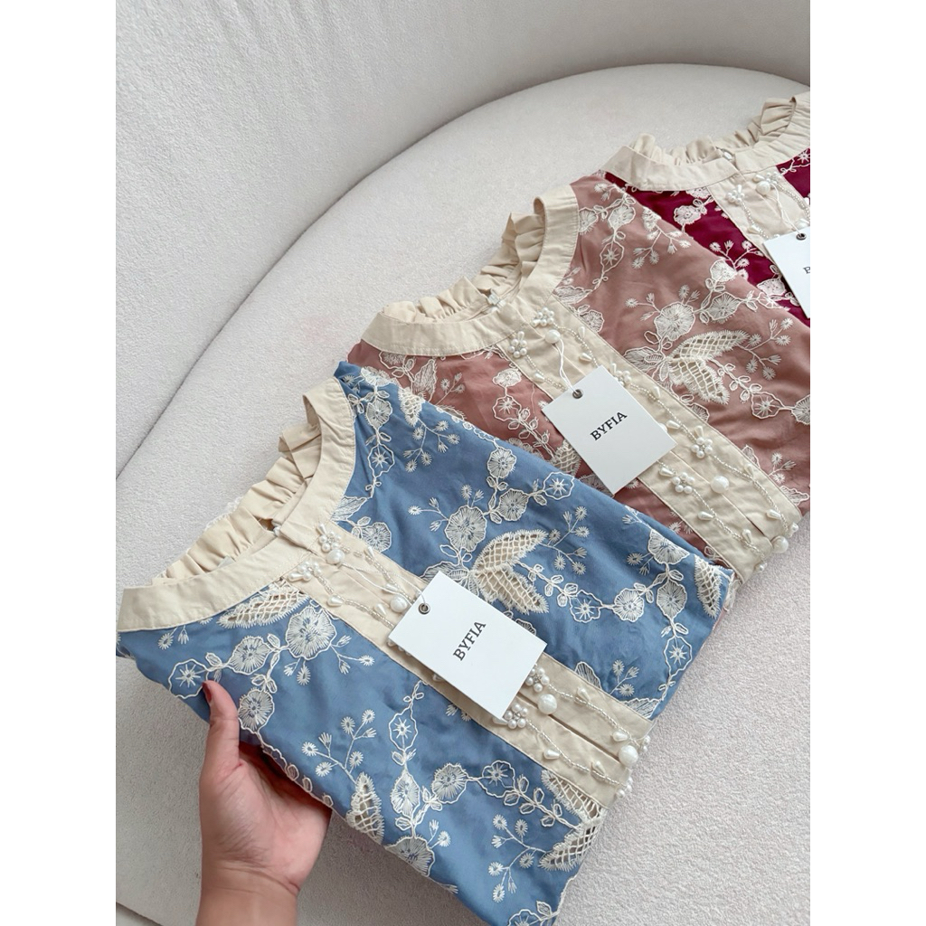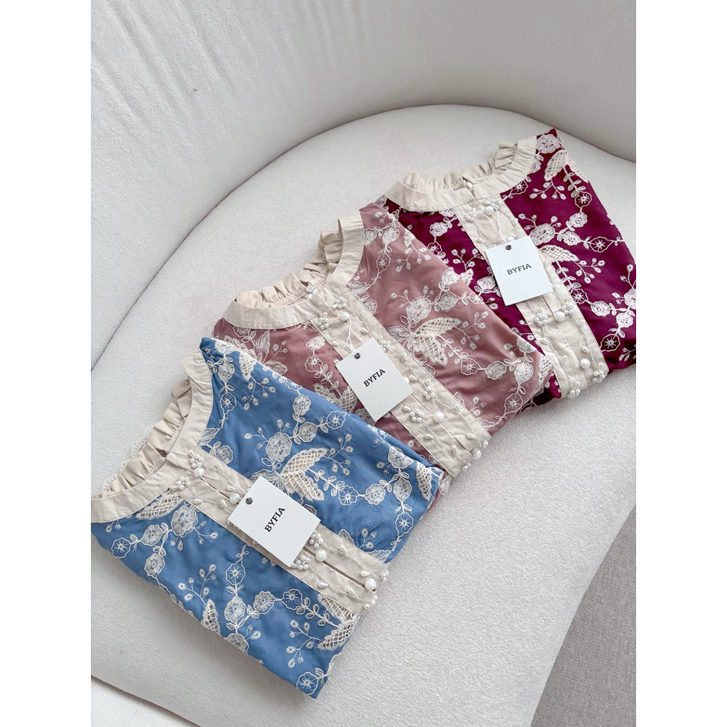 BYFIA Joina Lace Vest Blouse Atasan Wanita Terbaru Kemeja Katun Bestseller Blus Payet Lace Premium