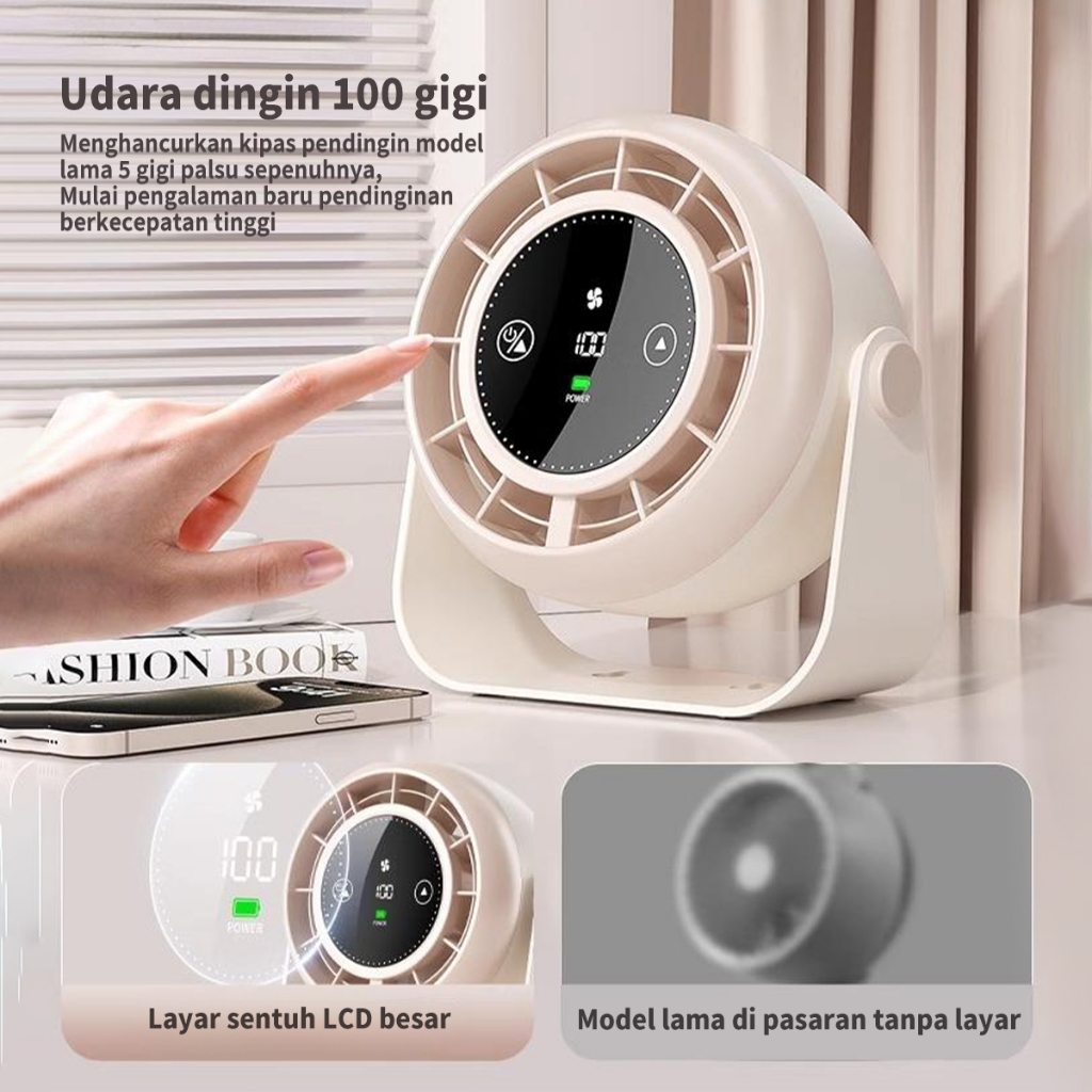 DL Kipas Angin Meja Portable100gigi Wind LED Display USB Charging Adjustable Turbo Kipas
