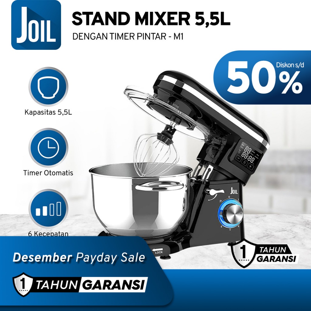 Joil Stand Mixer 5.5L Timer Off 6-Speed Stainless Steel M1