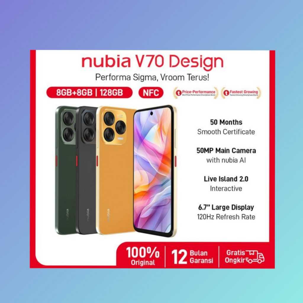nubia V70 Design NFC RAM 8GB+8GB ROM 128GB 5.000 mAh 33W Fast Charging 50MP