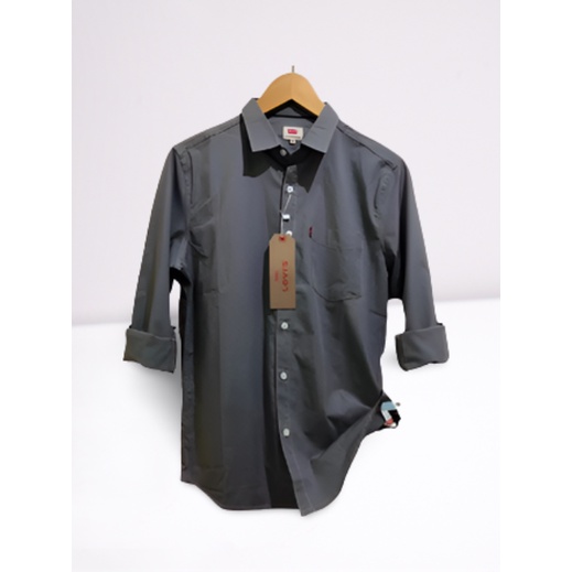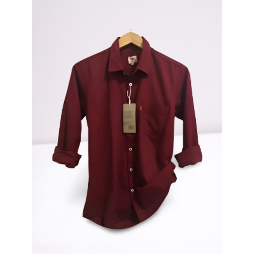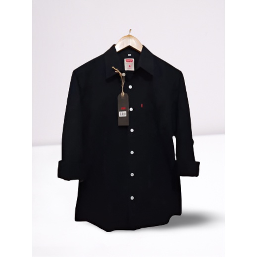 Kemeja Polos Pria Basic Lengan Panjang Hitam Baju Hem Atasan Kasual Formal KERJA Katun
