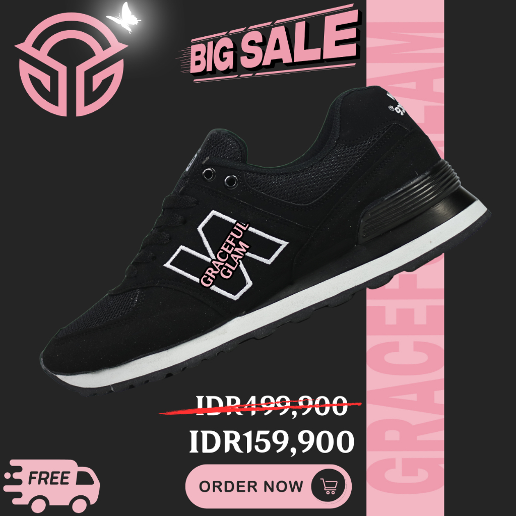 BIG SALE Sepatu Sneakers Hitam New Belen 574 Black White UNISEX Pria Wanita Siap Pakai Kapanpun