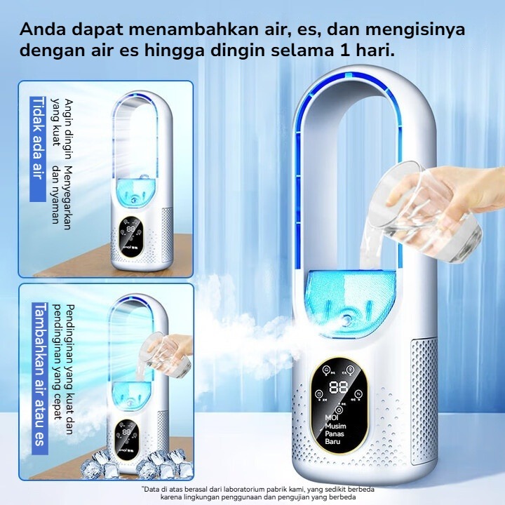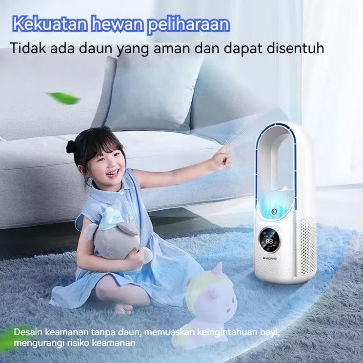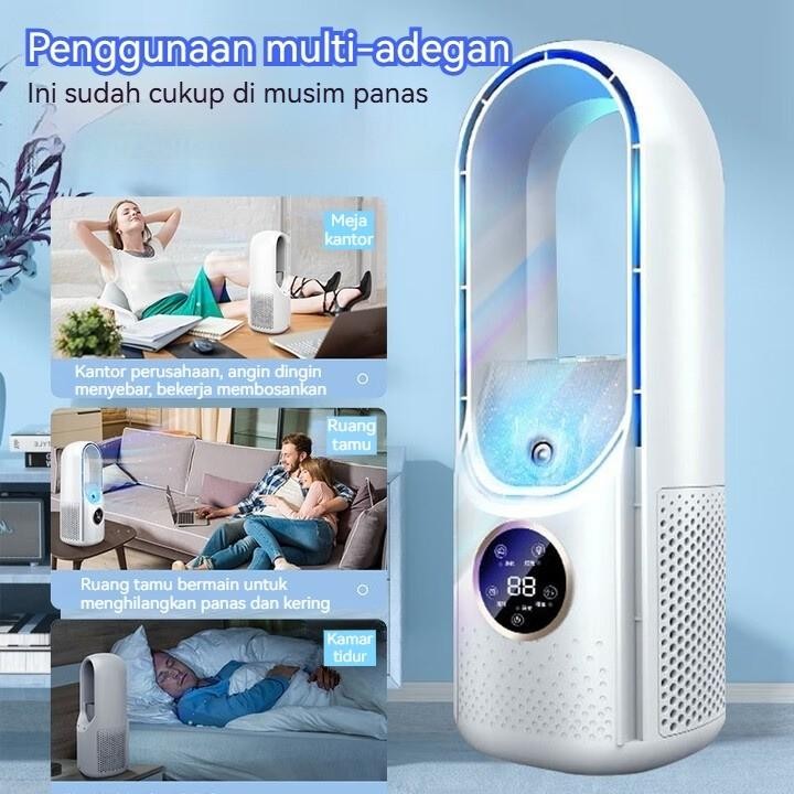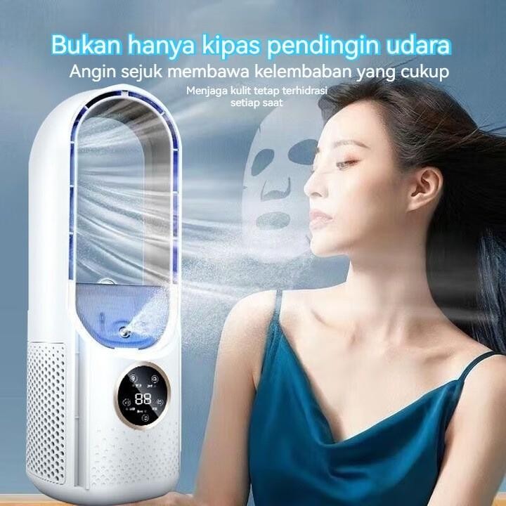 Kipas Meja Portable USB & Humidifier - Kipas Tanpa Daun/Baling Aman 720° Angin Lebar 6 Kecepatan Lampu LED 7 Warna untuk Kamar & Kantor FD03